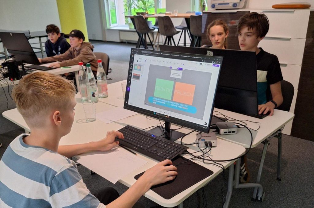 Praxisnahe Medienkompetenzförderung trifft auf gelebte Partizipation: Jugendliche lernen eigene Themen zu recherchieren und für die digitale Schulausstellung aufzubereiten.