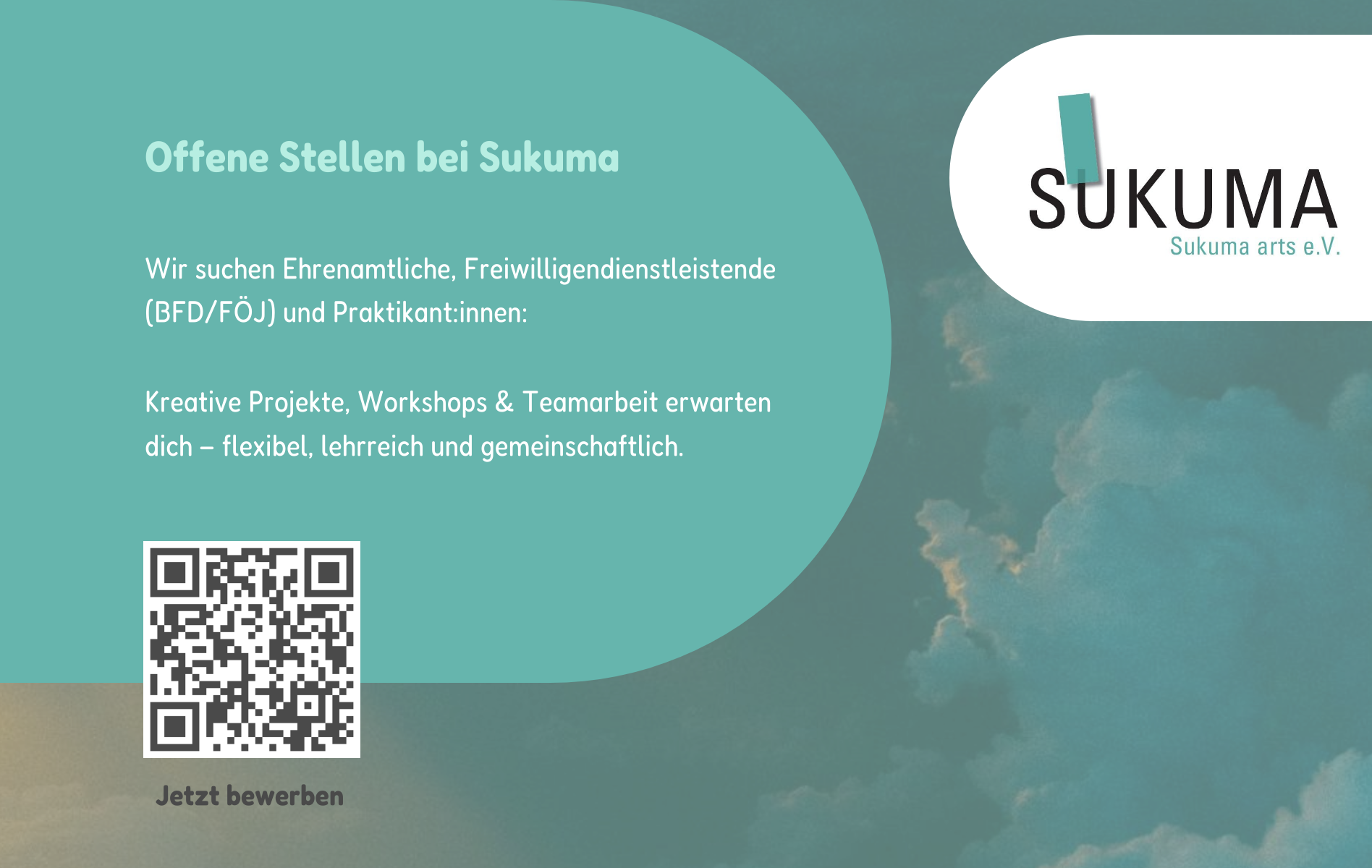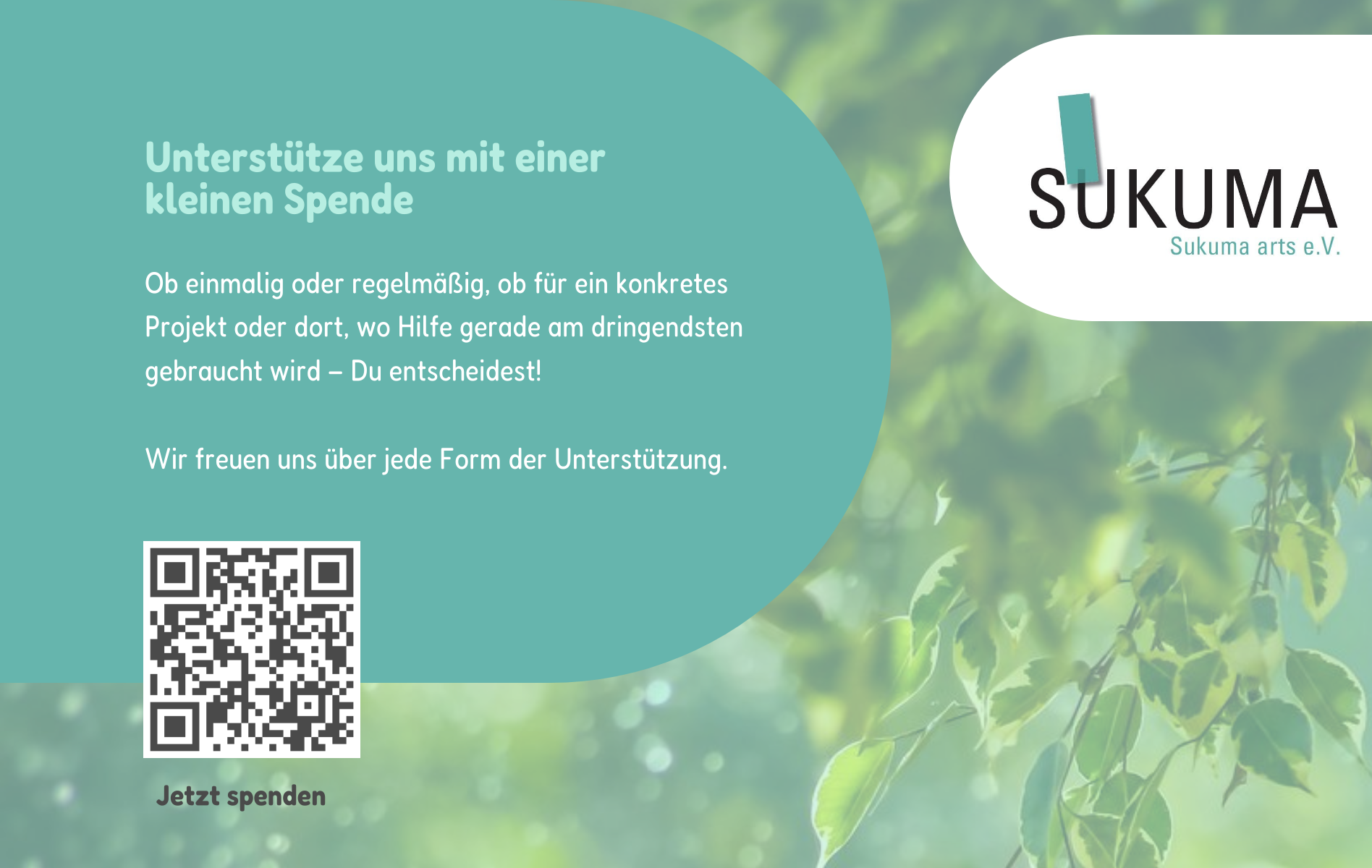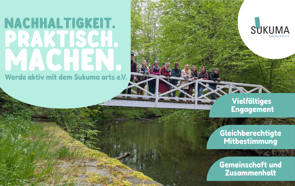 Sukuma arts e.V. engagiert sich für Menschen, die ökologisch und sozial nachhaltige Lebens- und Konsumstile in eine breite Öffentlichkeit tragen sowie alltagstaugliche Handlungsmöglichkeiten aufzeigen. „Sukuma“ – aus dem Swahili für „aufstehen“ und „anstacheln“ – ist bei unseren Projekten Programm. Seit 2006 regen wir Menschen an, sich kreativ mit ihrer Rolle in der globalisierten Welt auseinander zu setzen. Wir orientieren uns an den Ideen der Transition Town Bewegung, den Ansätzen des Commoning und der Soziokratie. Bildung für Nachhaltige Entwicklung (BNE) und das Globale Lernen sind unsere Leitbilder.